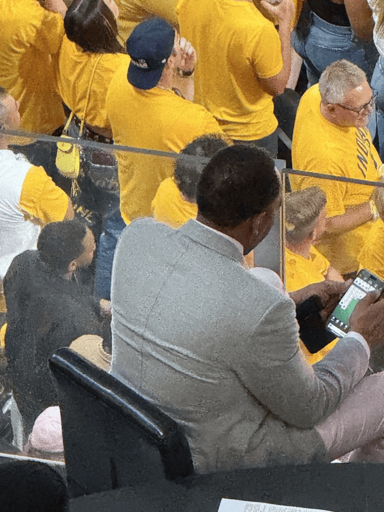 美媒BricksCenter晒出一张照片,美国名嘴史蒂芬-A-史密斯在总决赛现场用手机玩纸牌游戏,被现场球迷拍到。